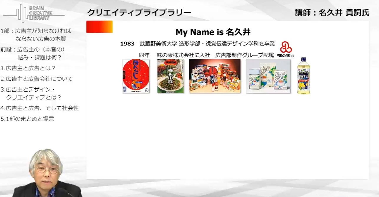 "元 味の素 理事 クリエイティブディレクター名久井貴詞氏から 「広告主が知らなければならない広告の本質」「広告主が身につけたい5つの力」を学ぶ"