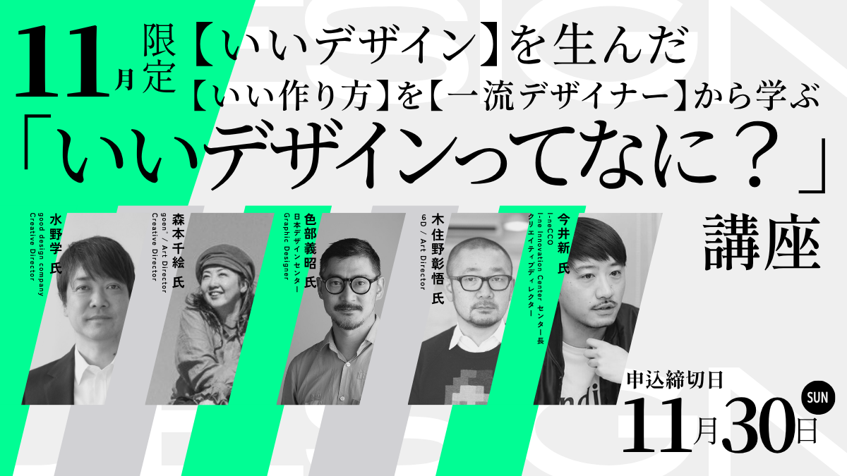 デザインの良し悪しは、見た目の美しさだけでは語れません。時代を超えて評価される「いいデザイン」には、普遍的な構造と思想があります。本講座では、数々の受賞歴を持つ一流デザイナー・クリエイターたちが、いいデザインの裏にある“思考のプロセス”を公開。普遍性・本質追求・人間中心など、いいデザインを支える7つの要素をテーマに、制作の現場でどう実践されているのかを掘り下げます。あなたの次の仕事が、未来に残るデザインになるために。流行を追うのではなく、時代を超えて通用するデザイン力を鍛えたいクリエイターの皆さまへ。デザインの核心を一緒に探りましょう。