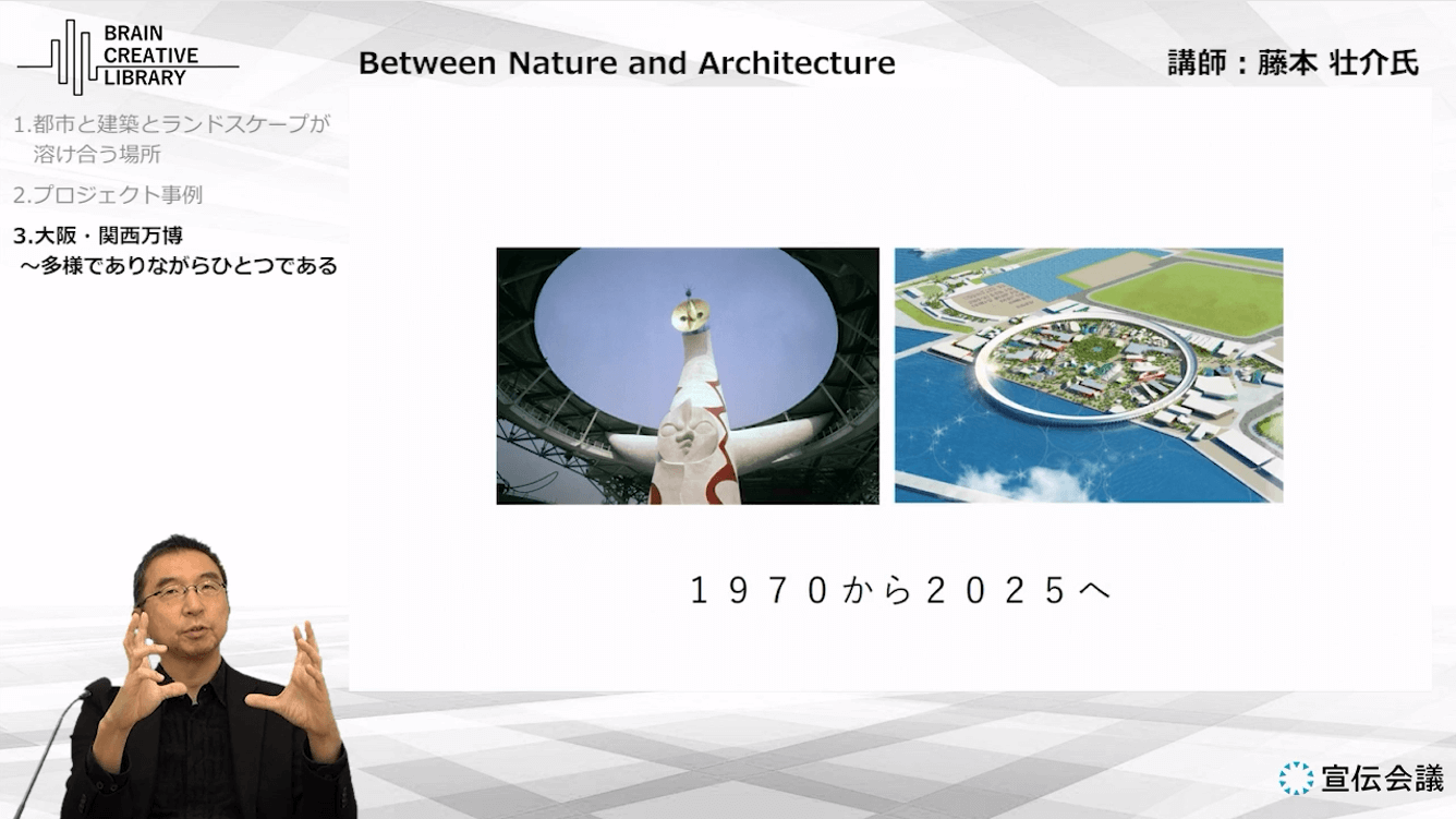 大阪・関西万博『大屋根リング』の成功事例のように、異なる文化や活動が違いを保ったまま共存しつながり合う場をどのように作りあげたのか。単なる造形や演出ではなく、“未来の社会像”から逆算する藤本氏のプロジェクト推進法とは。