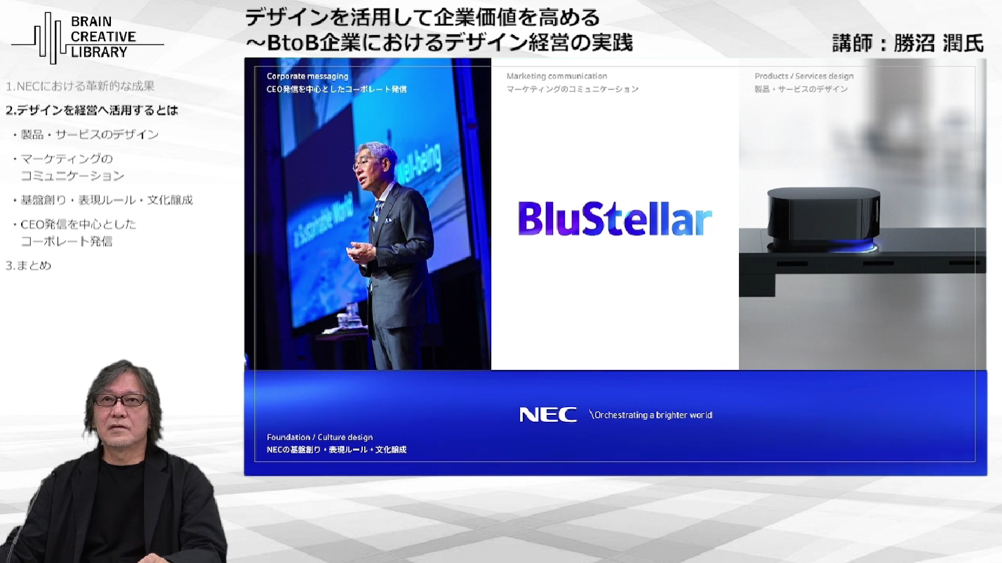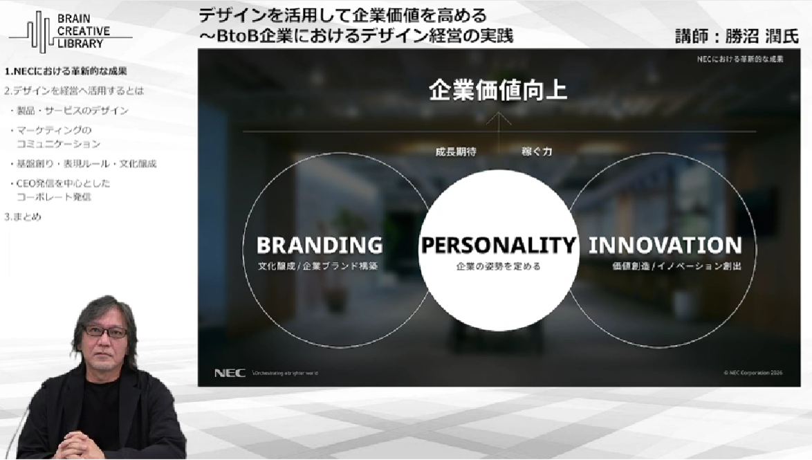 NECでは、デザインを「表層的な表現」ではなく、「経営と強く結びついた戦略機能」として再定義し、組織・ブランド・プロダクト・コミュニケーションを一貫してデザインすることで、市場からの評価を大きく高めてきました。