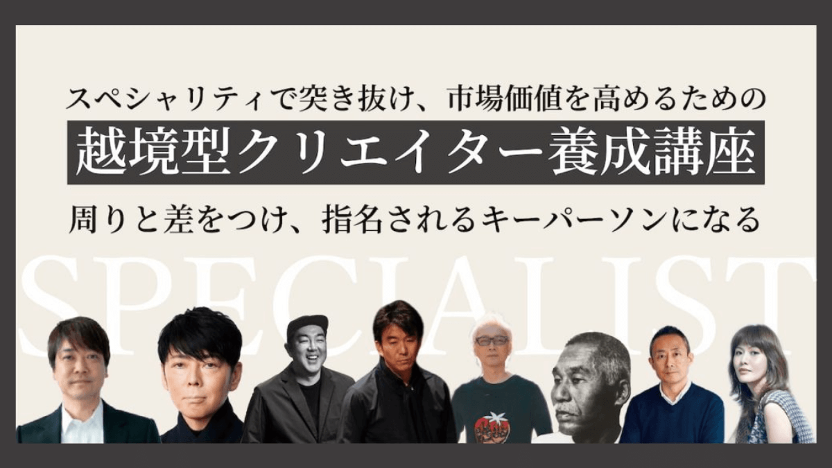 各領域で自身のスペシャリティを掛け合わせ、突き抜けている18名のスペシャリストが講師として登壇。スペシャリティで突き抜け、市場価値を高めるための「越境型クリエイター養成講座」を開講します。