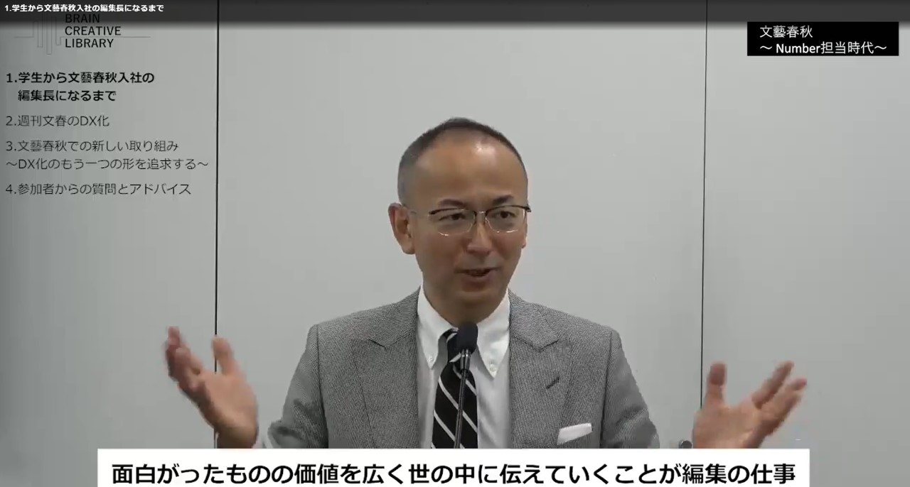 情報過多の時代に、埋もれずに突き抜けるコンテンツのつくり方とは?「文藝春秋」編集長 新谷学氏から、「コンテンツをつくる方法」「ファクトの固め方」「リサーチ方法」まで、コンテンツをつくり発信する全プロセスの秘訣を学びます。講師がこれまで編集を務めてきた「Number」「マルコポーロ」「週刊文春」において培ってきたコンテンツ制作の肝、また近年文藝春秋内で推し進めてきたDXと新しいメディアビジネスの収益モデルの立ち上げについても解説。1億総メディア時代にデジタルコンテンツで稼いでいく時代の生き抜き方を身に着けます。