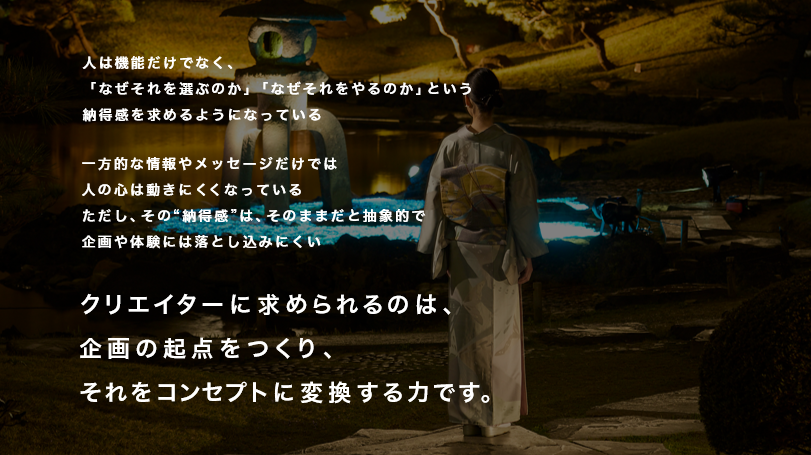 これからのクリエイターに求められるのは、企画の起点をつくり、それをコンセプトに変換する力です。