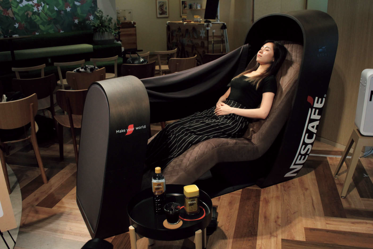 ネスレ日本とトヨタ自動車は8月19日から、「ネスカフェ睡眠カフェin原宿」において、トヨタ自動車が開発した戦略的仮眠ツール「TOTONE」を体験できる期間限定イベントを開催中(12月18日まで)。「仮眠」を活用した、より生産性の高い働き方を提案している。