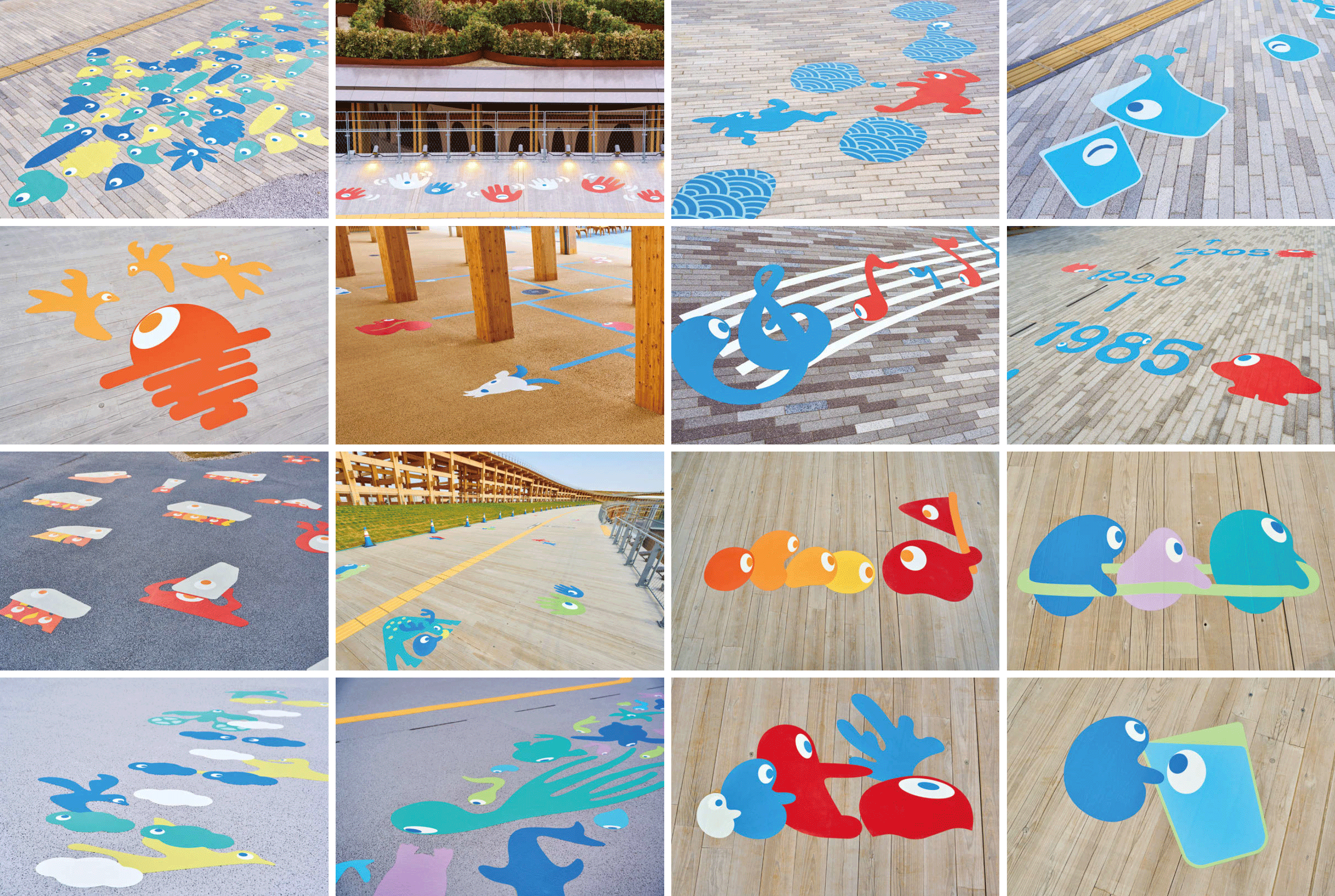 遊び心あふれる会場内の案内サイン「CoMYAKU Sign」。万博の世界観の中で自由に姿を変えたこみゃくたちが、SNSで大きな話題に。アートディレクターの浜名信次さんが細部までこだわってそれぞれのデザインを手がけた。
