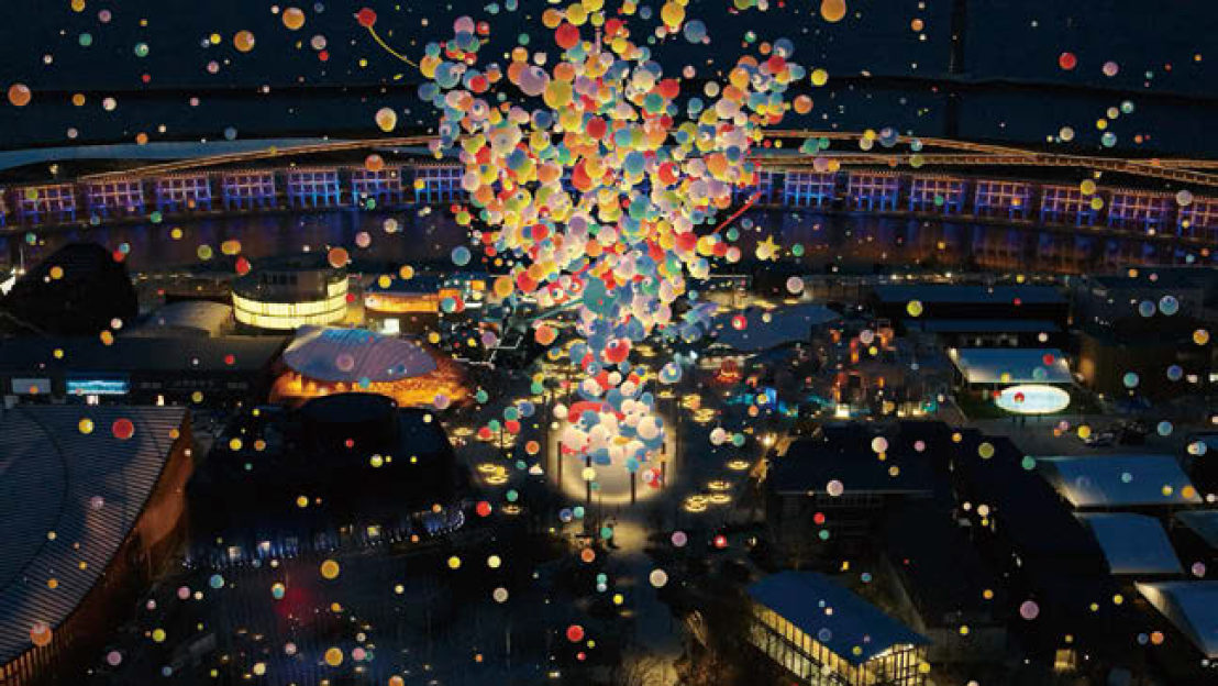 藤本壮介さんにお声がけいただき、デザインシステムの完成後少しの期間を挟み、「万博に帰ってくる」形で担当することになった、会場装飾の取り組み「EXPO WORLDs」。クリエイティブディレクターを務めるにあたって一番大切にしたのは、自ら3年前に設計したデザインシステムを、単に展開するだけに留まらず、「デザインポリシー」の5つ目に示した「参加と共創をうながすプラットフォームとしての『開かれたデザイン』」というコンセプトを核に据え、「文化的・社会的ムーブメント」としてより拡張した形で空間や社会に実装することでした。