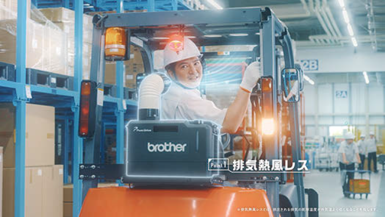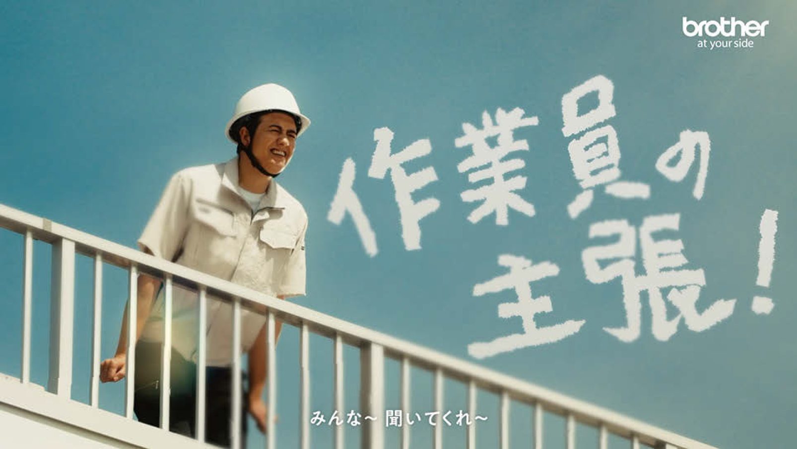 「作業員の主張」篇。ブラザー工業のスポットクーラーを「スタンダードなもの」として認知してもらいたいという意向から、あえて社名を何度も伝える構成に。
