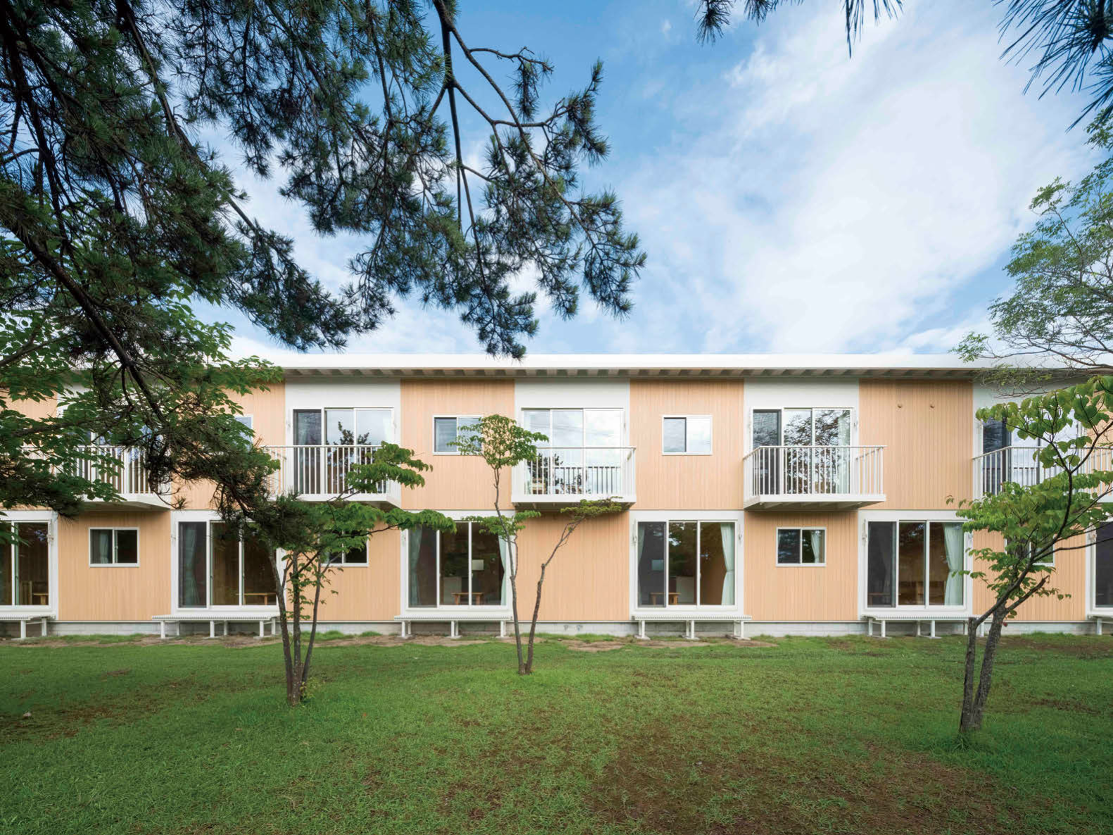 仮設住宅「DLT木造仮設住宅」(坂茂建築設計+家元+長谷川萬治商店、大賞)。