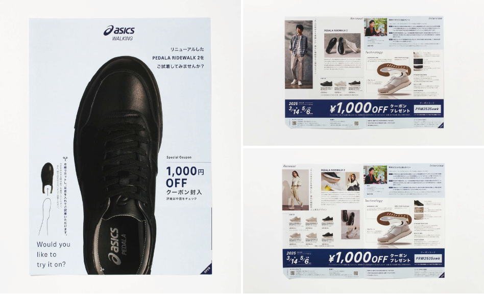 アシックスウォーキングの「PEDALA RIDEWALK」がリニューアルし「PEDALA RIDEWALK2」となった。この告知と、前モデルからの買い替え促進、およびアップセル、休眠顧客の活性化を目的にDM施策を実施した。