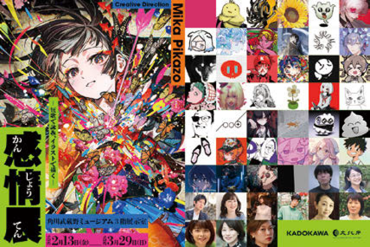 「感情展」は「短歌」と「イラスト」という表現領域を、〈感情〉という共通の軸から捉え直すもの。クリエイティブディレクターを務めるMika Pikazoによる描き下ろしの大作と、近代歌人のことばが響き合うエリアでは、表現者それぞれの個人的な記憶と作品を通し、感情がどのように芽生えて形づくられていくのかを見つめる。また別エリアでは、来場者と作品の境目を曖昧にするインスタレーションによって感情の揺らぎを視覚的に捉える演出や、イラスト作品から言葉を乖離させることで作者の言葉にできない感情を浮き彫りにする試みにも挑戦する。本展を通じて、人が感情を抱き、言葉やイメージへと変えていくプロセスを体感できるだろう。