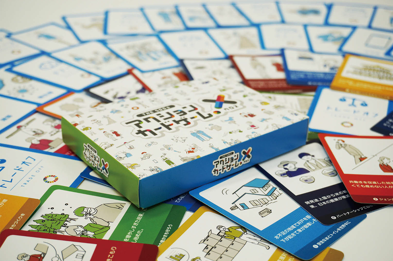 「THE SDGs アクションカードゲームX」は、SDGsの17個の目標に沿ったトレードオフの解消を目指すゲーム。「トレードオフカード」と「リソースカード」の2種類のカードで構成されている。