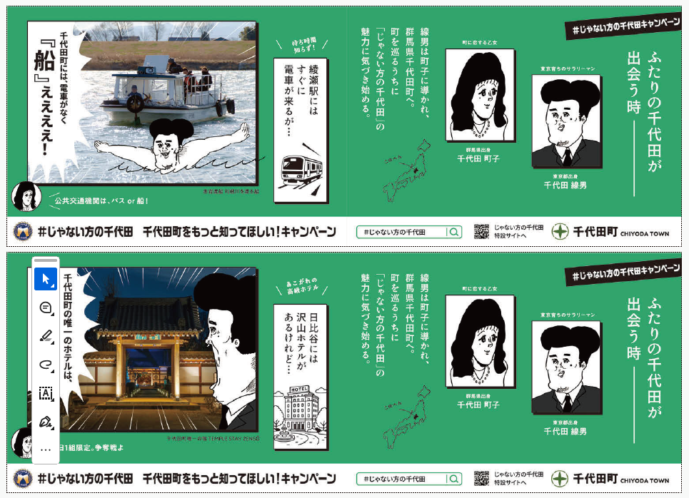 8月25日、群馬県千代田町が「#じゃない方の千代田」キャンペーンを 開始した。東京メトロ千代田線8駅には東京都千代田区生まれの「千代田線男」と群馬県千代田町生まれの「千代田町子」というキャラクターが 各駅の特徴と千代田町の特徴...