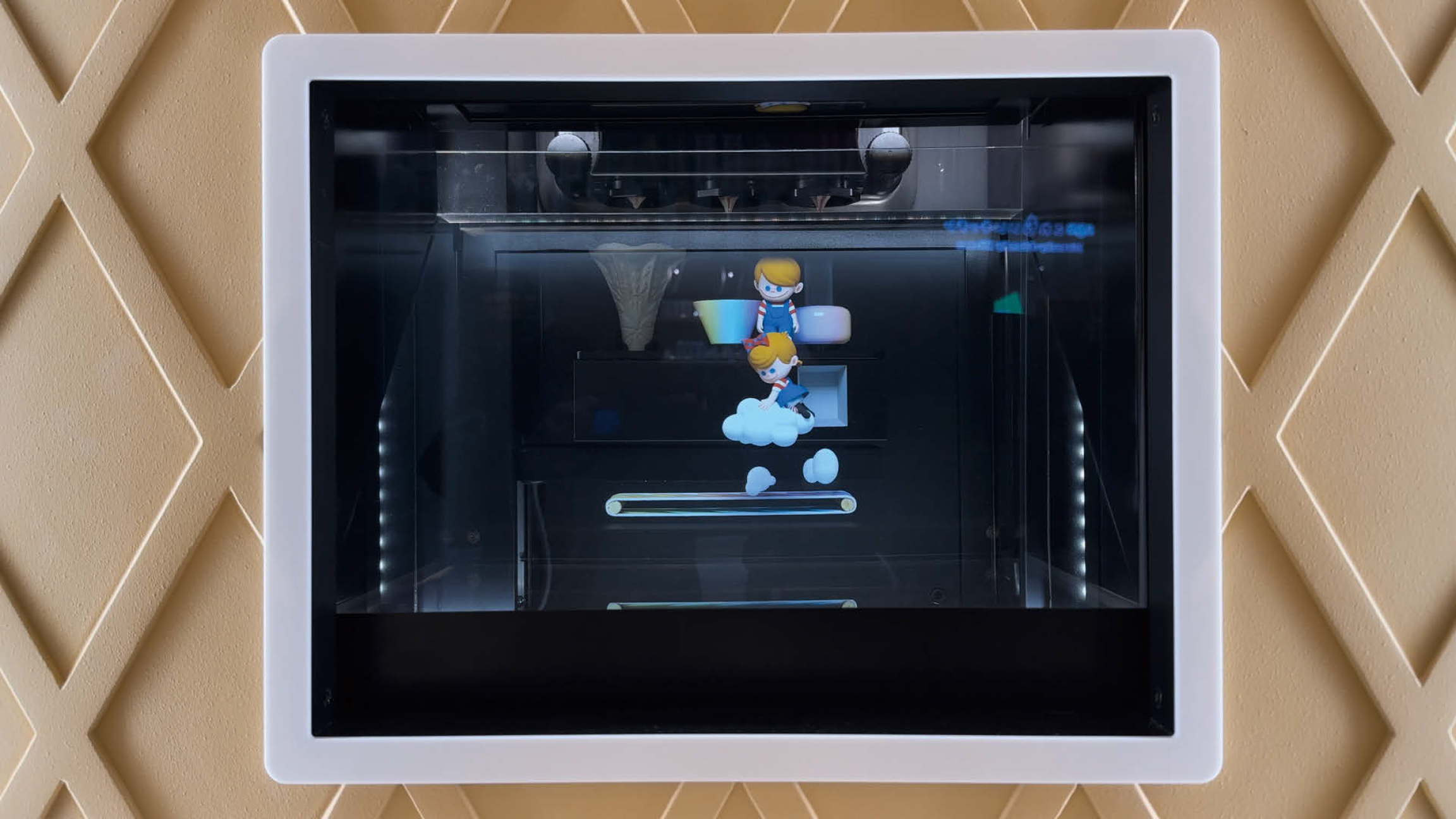 ニックン&セイチャンは、約70年にわたりソフトクリームのそばにいる同社のキャラクター。マシンのコンテンツは2023年7月頃から検討を始め、キャラクターの3Dホログラムを採用することになった。ニックン&セイチャンの3D化は今回が初めて。動きをつけてもかわいらしさを維持することなどを検討し、1年がかりでホログラムコンテンツを完成させたという。