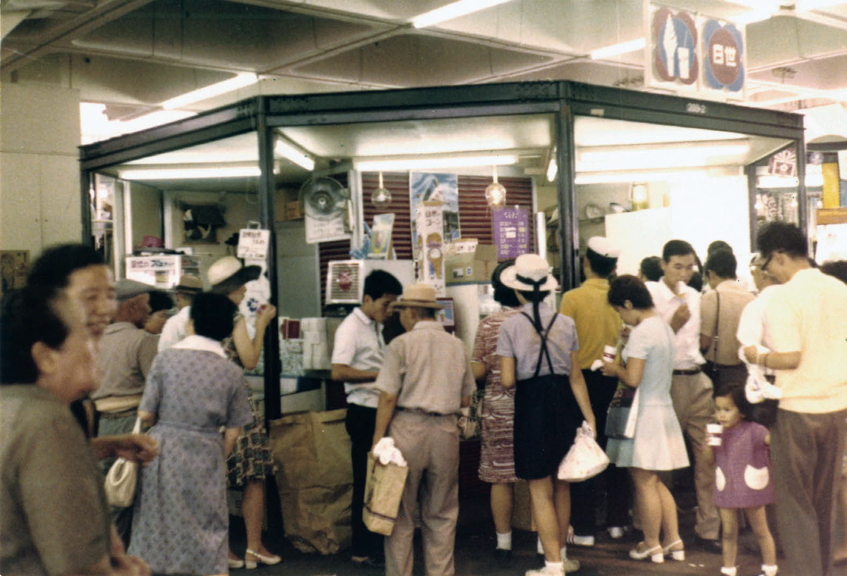 1970年の大阪万博の際に出店したブース。同社は国産フリーザーの開発などを経て少しずつソフトクリームの認知度を伸ばしていたが、70年の出店を機に大流行。太陽の塔の近くなどに設置した直営店は連日賑わった。