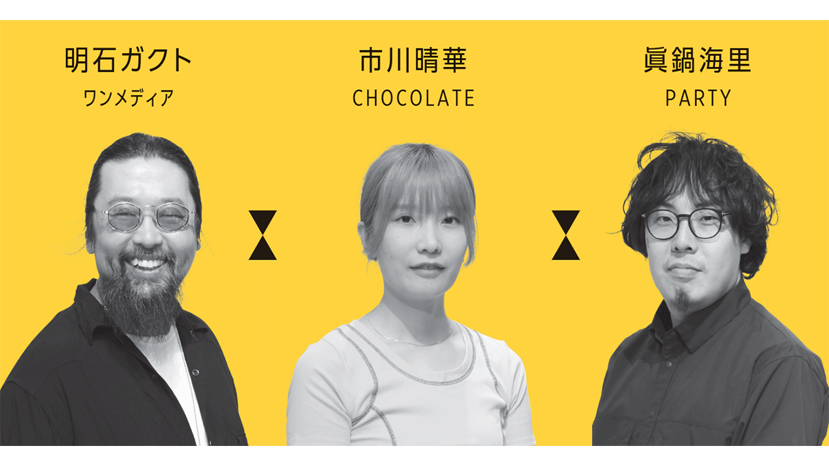 明石ガクト(ワンメディア)、市川晴華(CHOCOLATE)、眞鍋海里(PARTY)