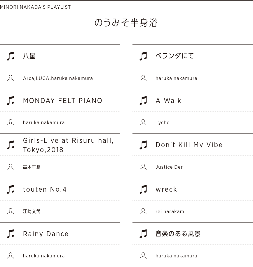 MV監督のお仕事が増えてお声がけいただいた本企画ですが、Spotifyプレイリストで聴くとなると凪のような選曲に。目で聴く音楽と耳で聴く音楽の違い、MVの意味や使命についても考える機会となりました。日々何かをつくりだそうとも...