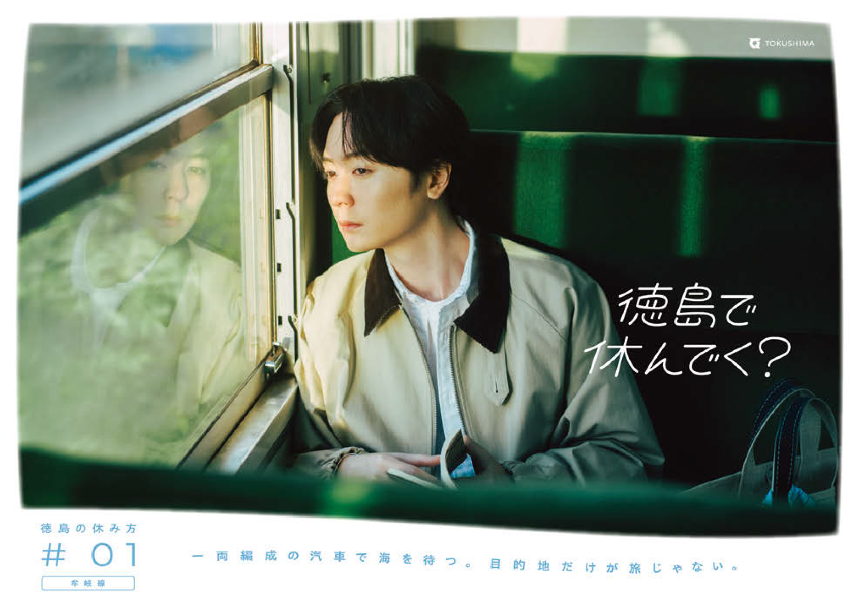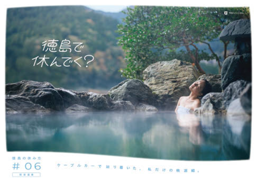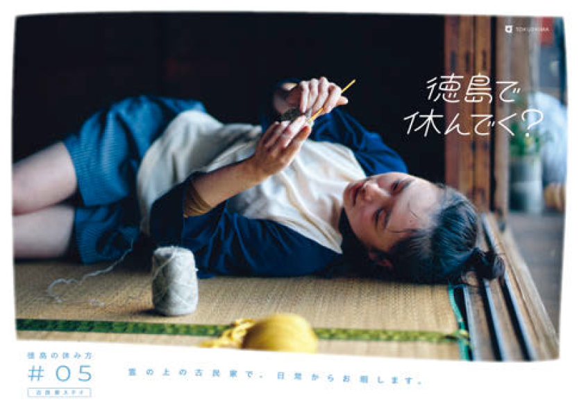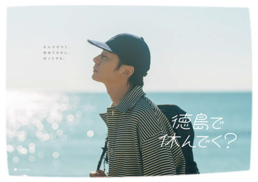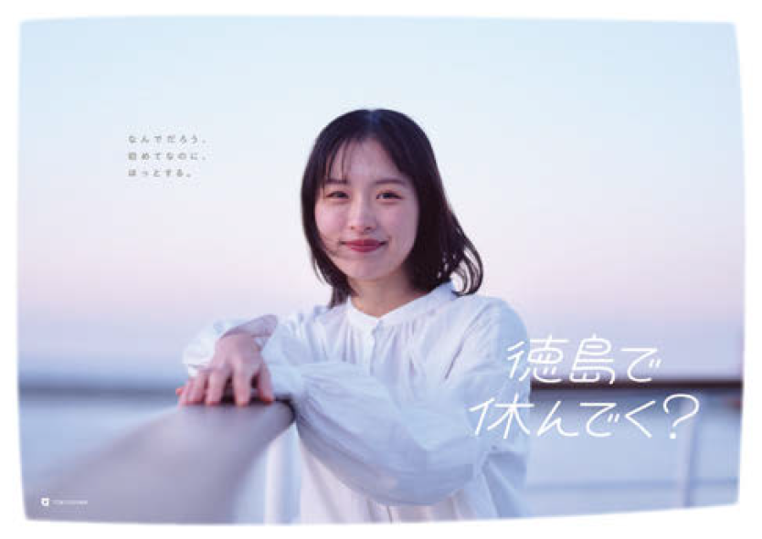 コピー「徳島で休んでく?」は、県民が優しく語りかけているような安らぎ感のある言葉に。