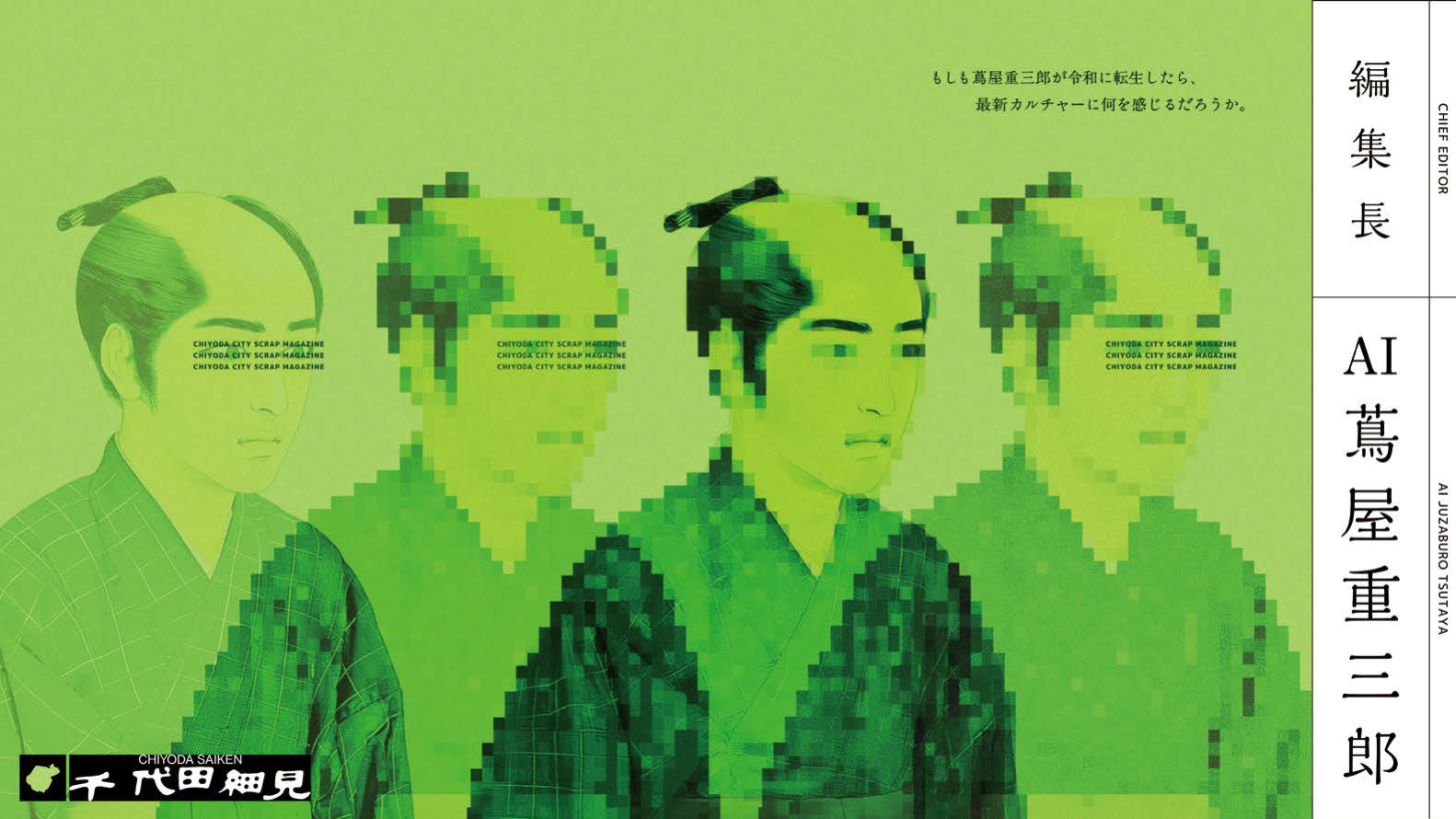 2025年放送のNHK大河ドラマ『べらぼう~蔦重栄華乃夢噺~』の主人公である、江戸時代のメディア王、“蔦重”こと蔦屋重三郎をAIによって現代に蘇らせ、編集長として起用した観光ガイドブック『千代田細見(ちよださいけん)』。本プロジェクトは、『べらぼう』を自治体の観光プロモーションへ活用するNHKの公募に千代田区が参加し始まったものだ。企画制作は当時NEWPEACEに所属していたプランナー兼クリエイティブディレクターの田中佳佑さん(現在は独立)が手がけ、技術開発にはKonelが携わり、エンジニアの岡田太一さんが実装を担当した。