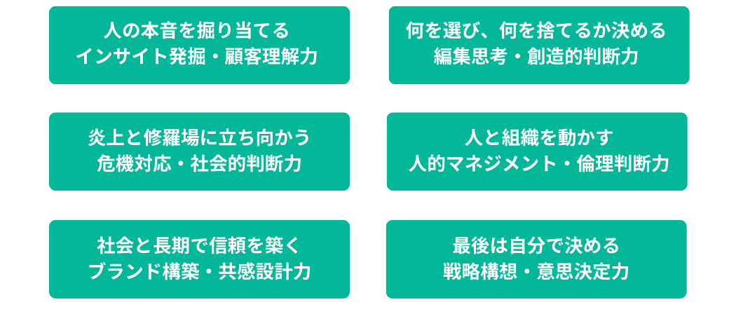 社会文脈やブランド思想を読み取り、創造性を統合する力が競争力になります。