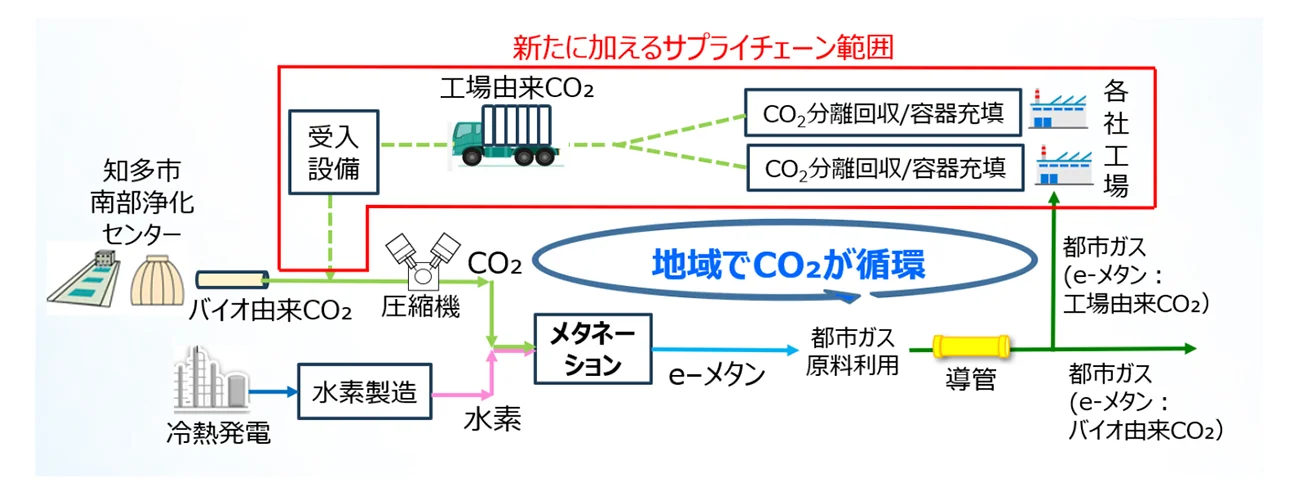 国内初、同じ地域・事業者でCO2排出→eメタン製造・供給→燃料で再利用