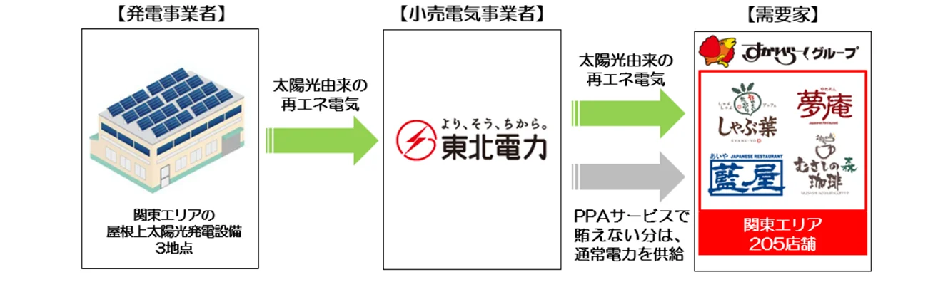 「夢庵」など205店舗に再エネ導入、東北電力の屋根上オフサイトPPA活用
