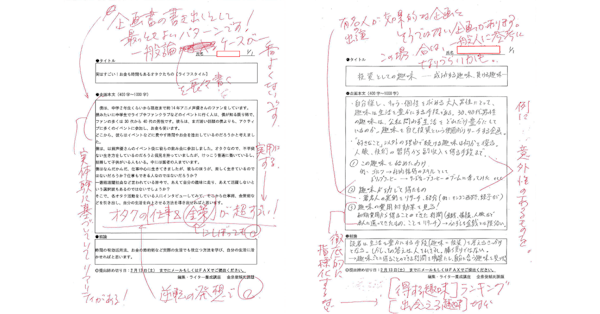 「質が高い」と言われる記事の多くは、最後まで読みたくなるように構成されています。構成は、紙媒体なのか、Web媒体なのかでも変わりますし、読者層によっても変わります。媒体ごとの特性を踏まえた構成を学ぶと同時に、読みやすい、分かりやすい文章を書くために、記事執筆の課題を出題し、プロの講師が1人1人に赤入れをして書き方のアドバイスをしていきます。
