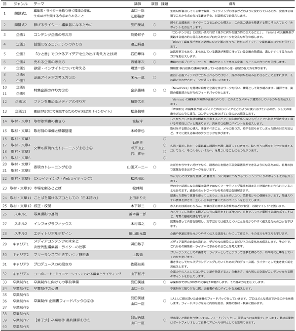 ※毎期アップデートしており、内容は変わることがございます。実際の講義順とは異なります。