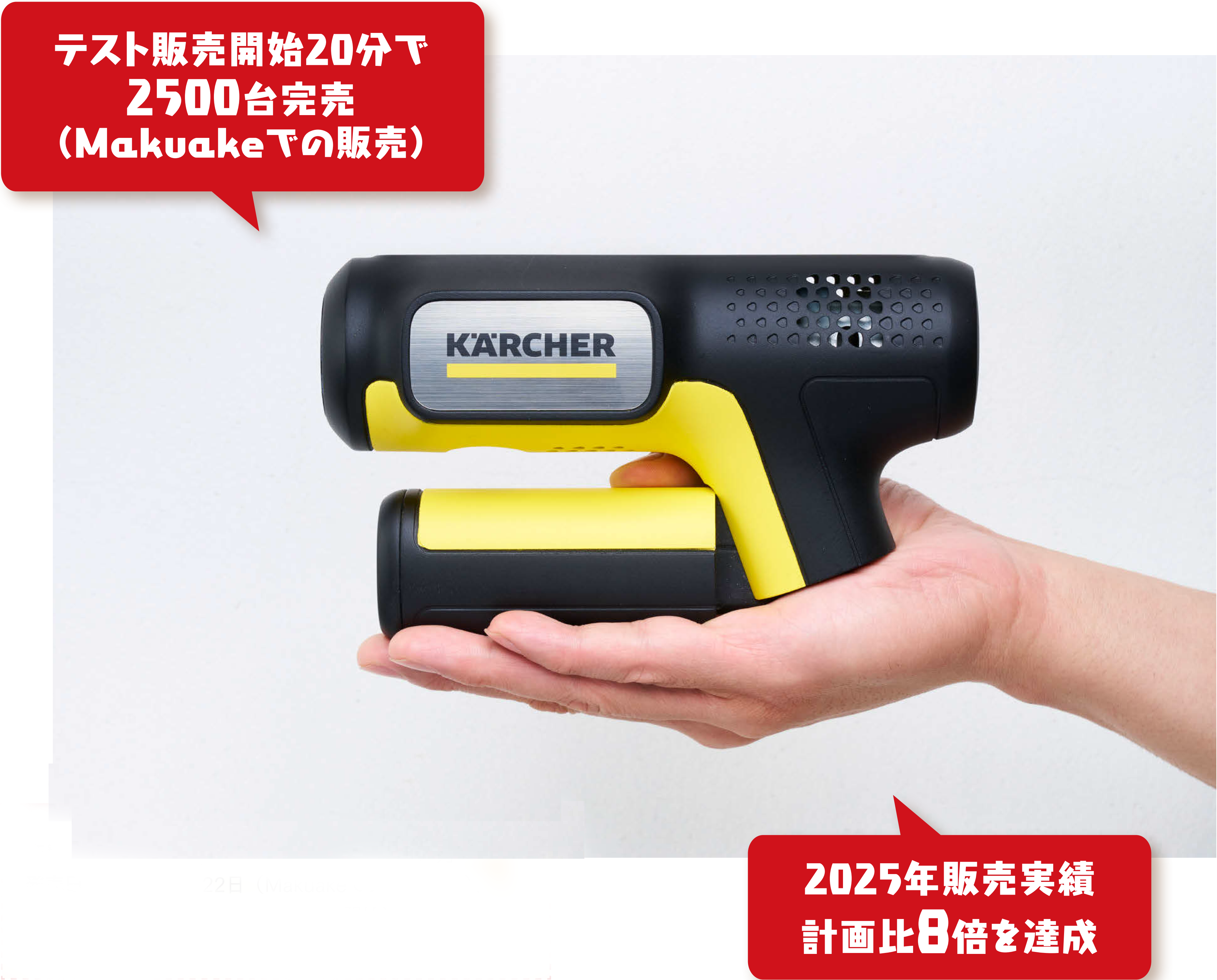 収納スペース、セットアップの手間など、ケルヒャーが長年抱えていた顧客の不満を、折りたたみ式の「ハンディエア」が一掃した。Makuakeのテスト販売では開始20分で2,500台が完売。衝撃的なスタートを切った後、2025年末までに計画比8倍の販売を達成した。成功の鍵は、「車に乗る前の“一瞬のモヤッと”」という潜在的なユーザーインサイトの発見と、話題性を絶やさない戦略的なマーケティング・PRにあった。
