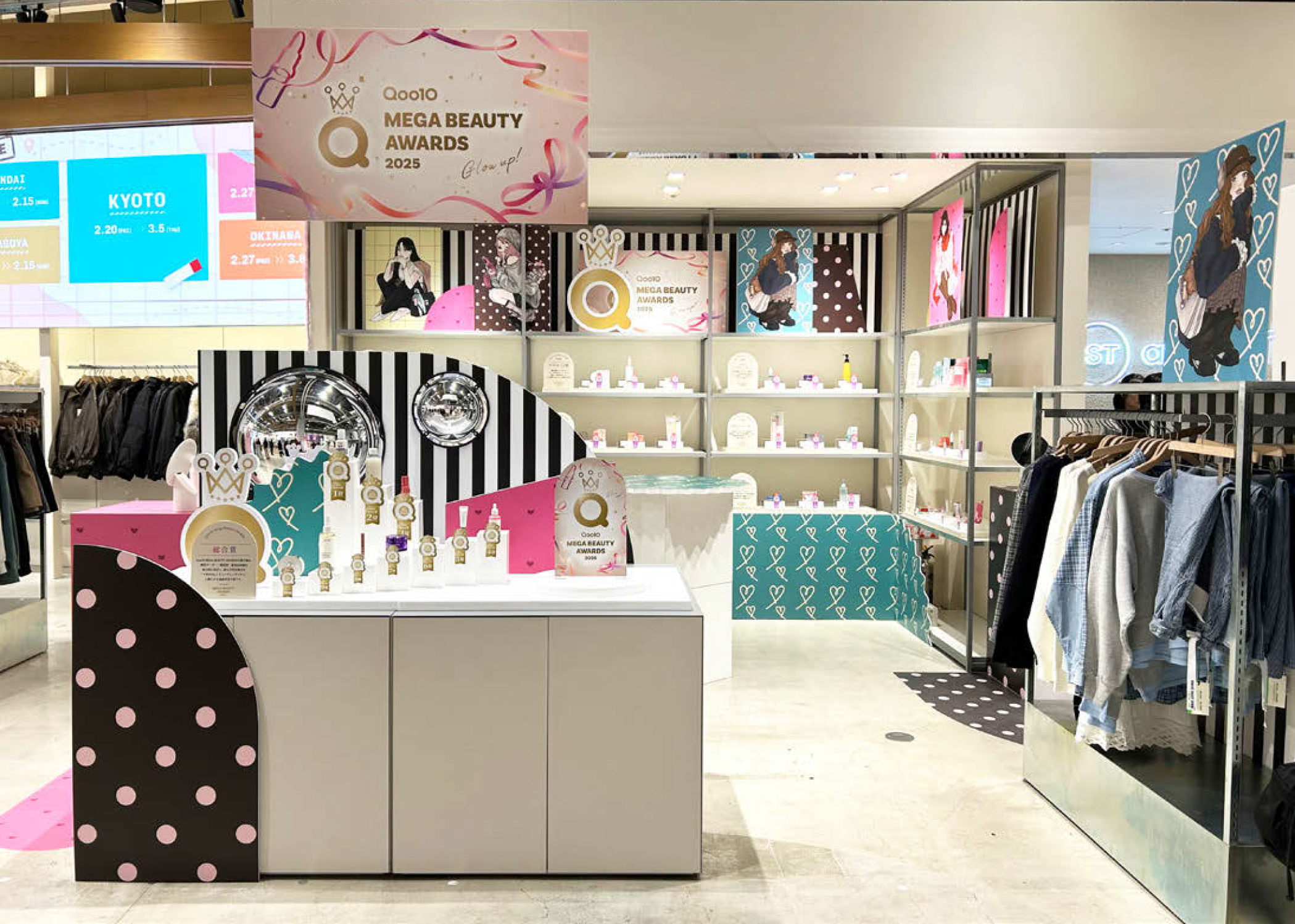 連動施策:ブースでのファッション・コスメアイテムの展示、「Qoo10 ME GA BEAUTY AWARDS 2025」を受賞したコスメのノベルティバッグ配布