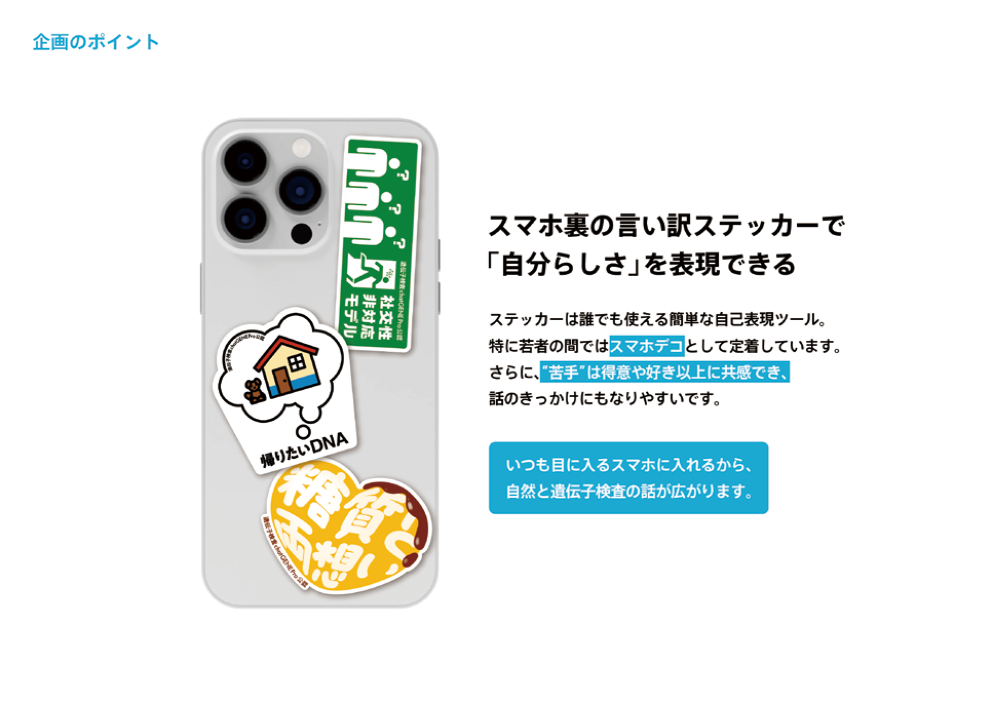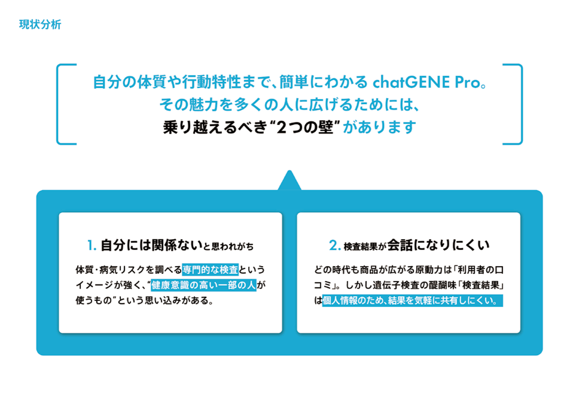 課題:遺伝子検査chatGENE Proを、◯ ◯界隈に広げるアイデア