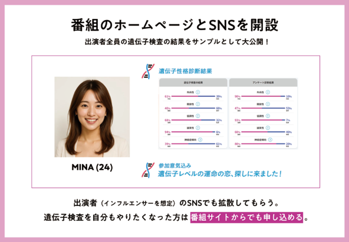 遺伝子検査という多くの人にとって遠いテーマを、恋愛リアリティという身近で...