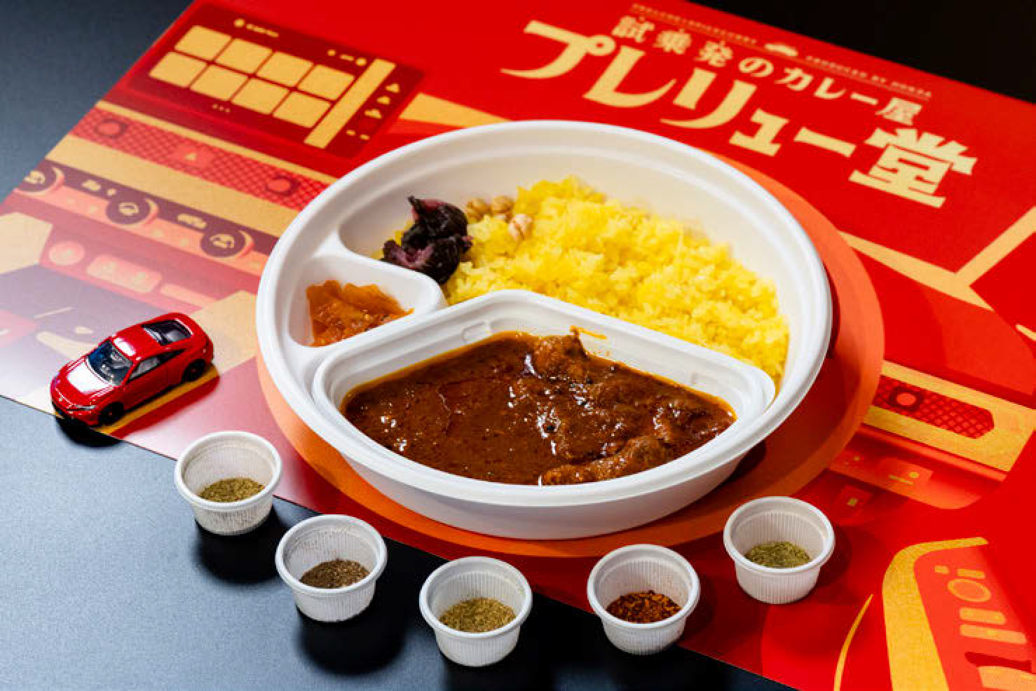 メニューは、年間850食のカレーを食べるスパイス料理研究家・一条もんこ氏が監修。一条氏自ら同車を試乗し、それぞれの走りの個性をスパイスの味や香りで表現した「6つの味を楽しめるカレー」を開発した。
