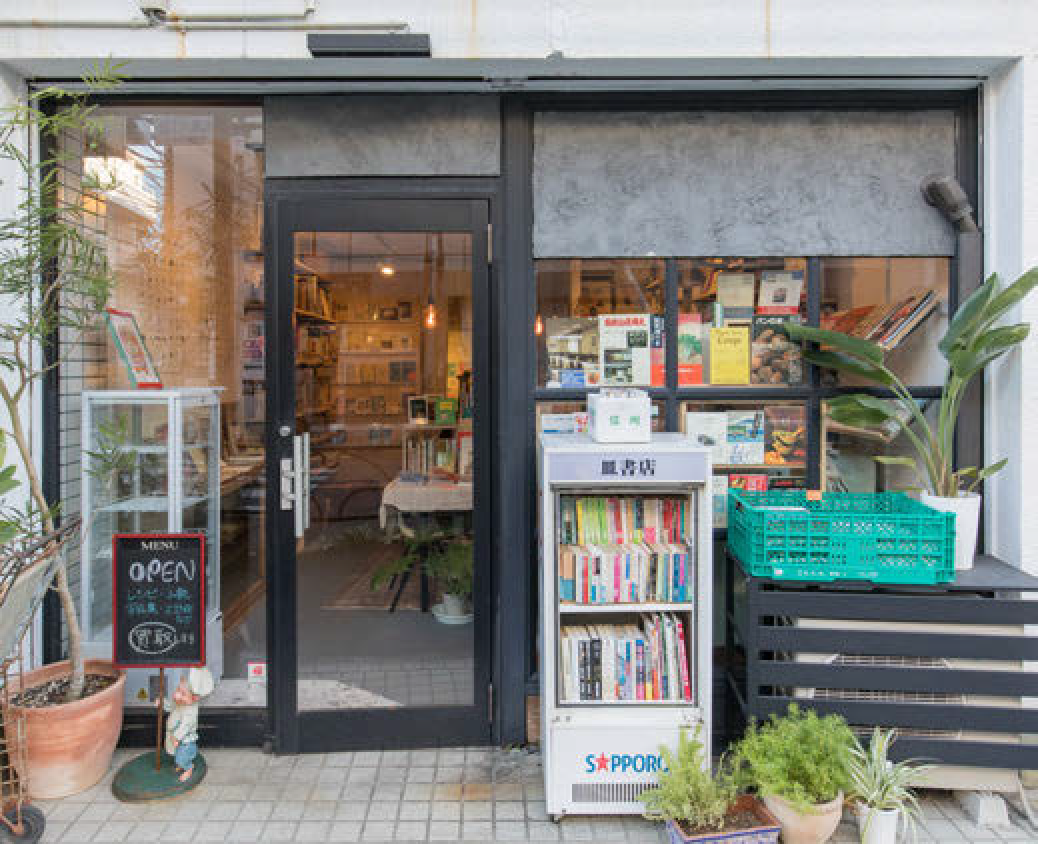 小田急線豪徳寺駅から北へ5分程歩き赤堤通りにぶつかった左角にあるのが「皿書店」。食関連本を中心に扱う古書店だ。店頭にある飲料ケースを利用した低価格本の棚が食にまつわる書籍が揃うことを想起させる。