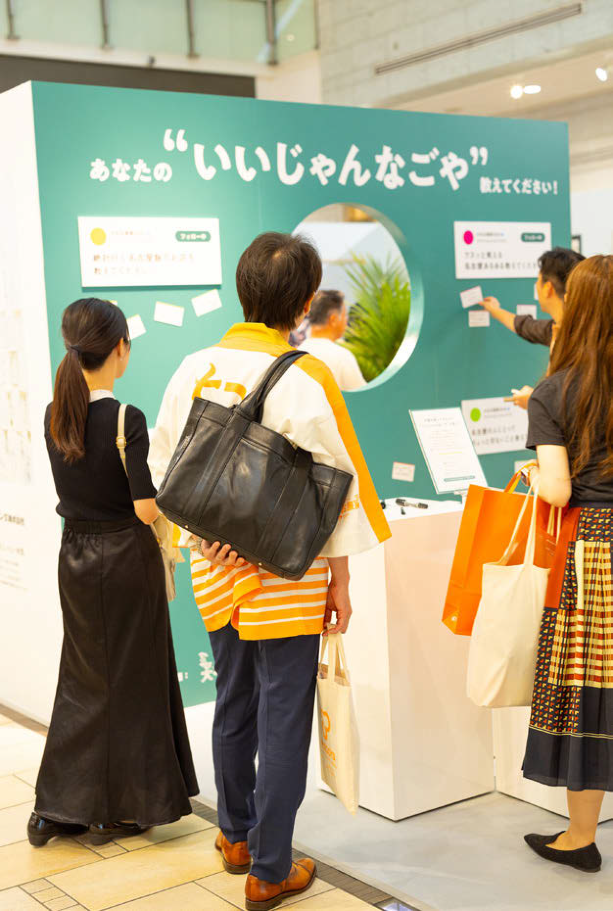 (上)「大名古屋展2025」で実施した参加型展示「いいじゃんなごや」。自分の...