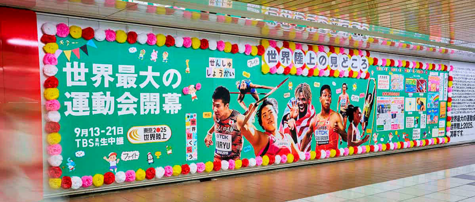 東京2025世界陸上競技選手権大会が、2025年9月13日から21日まで開催された。東京での開催はおよそ34年ぶり。大会に先立ち、TBSは同年9月1日から首都圏を中心に大規模なOOHを展開。「世界最大の運動会開幕」というコピーを掲げ、巨大なOOHや車両ジャックなどで大会を盛り上げた。