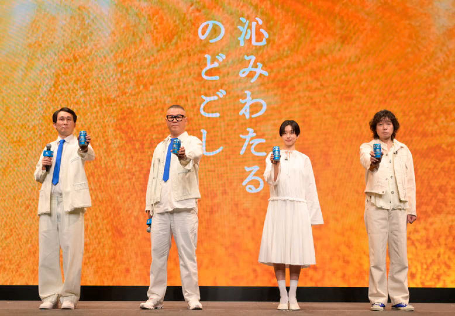 河合優実(俳優)、斉藤和義(歌手)、シソンヌじろう・長谷川忍(お笑いタレント)、塚原大輔(サントリー執行役員マーケティング本部副本部長兼ビール・RTD部長) |