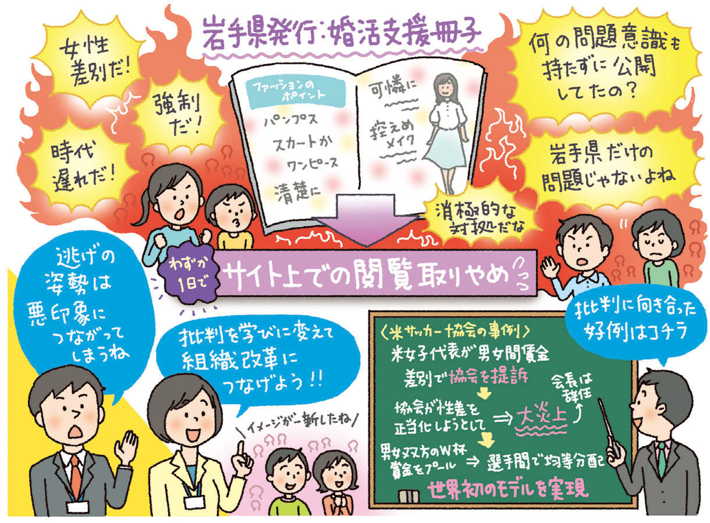 2025年10月、岩手県が作成した婚活支援の冊子に書かれていた表現が批判され、県はサイト上から削除した。