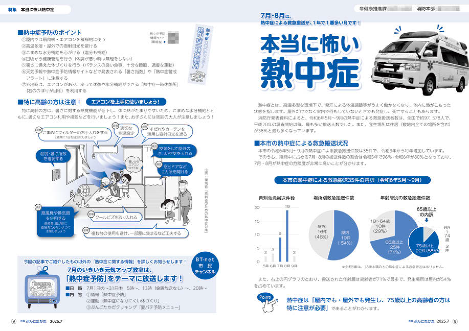 市内の熱中症による救急搬送件数は令和3年から連続して増加する傾向にあり、昨年5~9月は35件にのぼるとデータで伝えて注意を喚起。そのうち高齢者が71%を占めると指摘した。高齢者層に向けては、暑さに対する...