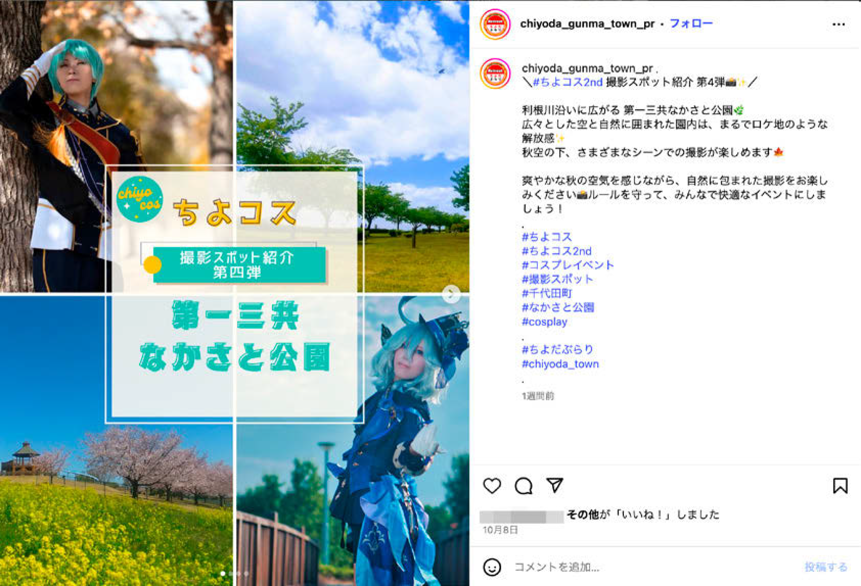 群馬県千代田町は2025年3月に、シティプロモーションイベント「ちよコス~千代田コスプレコレクション~」を開催しました。このイベントは千代田町のユニークなロケーションを「撮影スタジオ」として開放し、コスプレイヤーやフォトグラファーの方などに撮影を楽しんでいただく取り組みです。第1回の好評を受け、11月8日には「ちよコス2nd」を開催予定です。