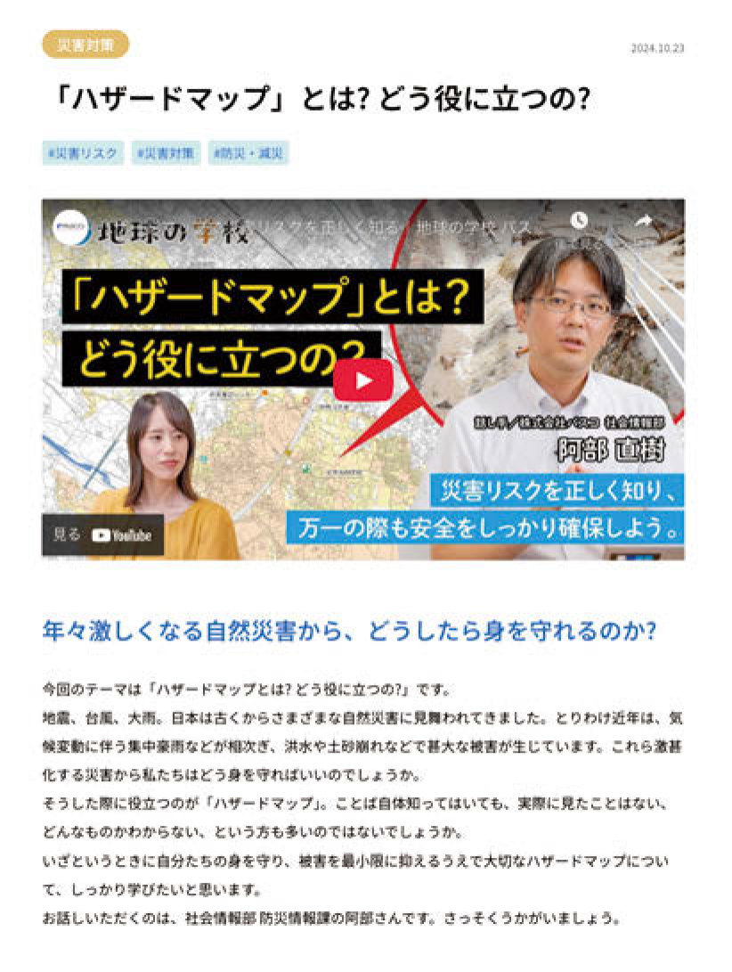 空間情報の収集技術や加工・処理・解析技術を使って、「防災・減災」「国土管理」「インフラ管理」などの社会課題を解決するためのソリューションを提供するパスコ。2024年、同社の創業記念日である10月27日に初のオウンドメディアである「地球の学校」を立ち上げた。