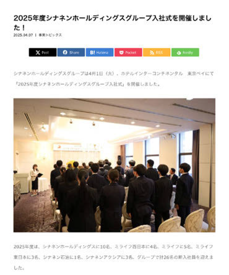 今年度の入社式の様子を紹介。新入社員も含め、社員の顔をオープンにすることで、エンドユーザーやステークホルダーに“企業の顔”を見てもらう。