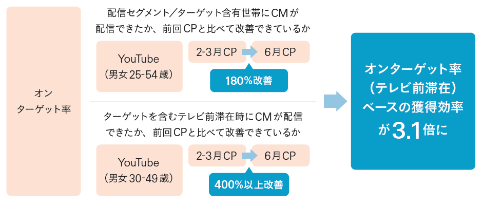 図表2 コネクテッドTVにおけるYouTubeオンターゲット率改善結果