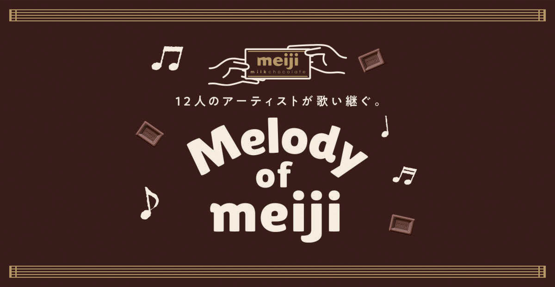 「明治ミルクチョコレート」の発売開始99周年を記念した企画のひとつ、「Melody of meiji」。「チョコレートは明治♪」でおなじみの「明治チョコレート・テーマ」をアーティストが歌う。