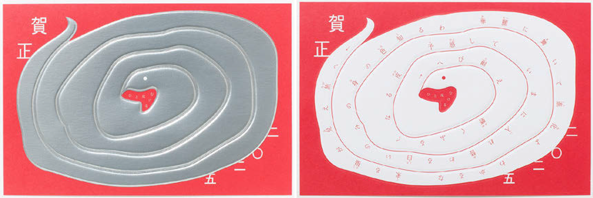 銀色の蛇を剥がすと回文メッセージが現れる。受け手の触感を刺激し、記憶に残る設計を目指した。
