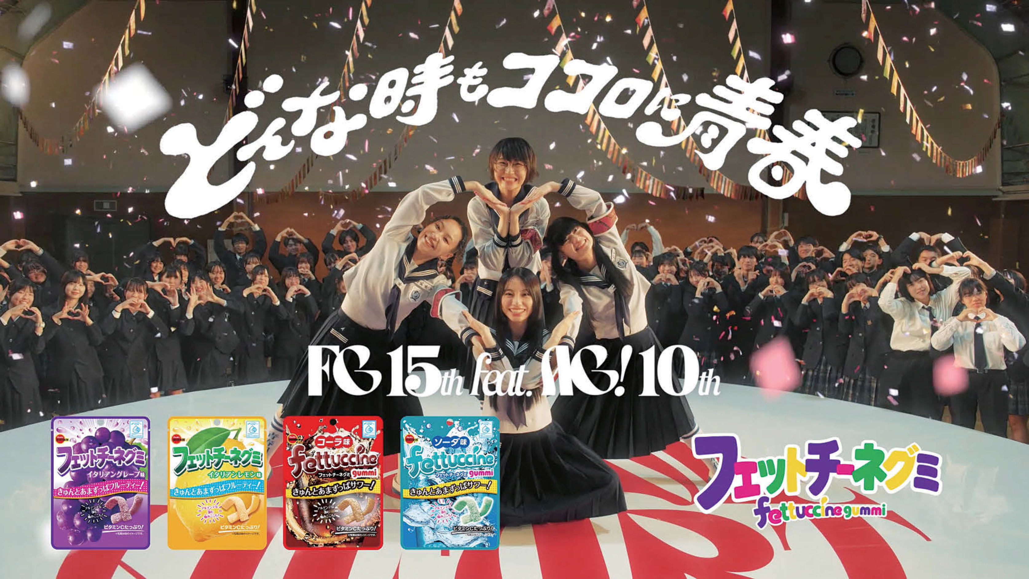 ブルボンは、「フェットチーネグミ」の発売15周年を盛り上げるテレビCM・フェットチーネグミ「15周年 High School FES in 柏崎」篇の放映を2025年12月1日より開始した。