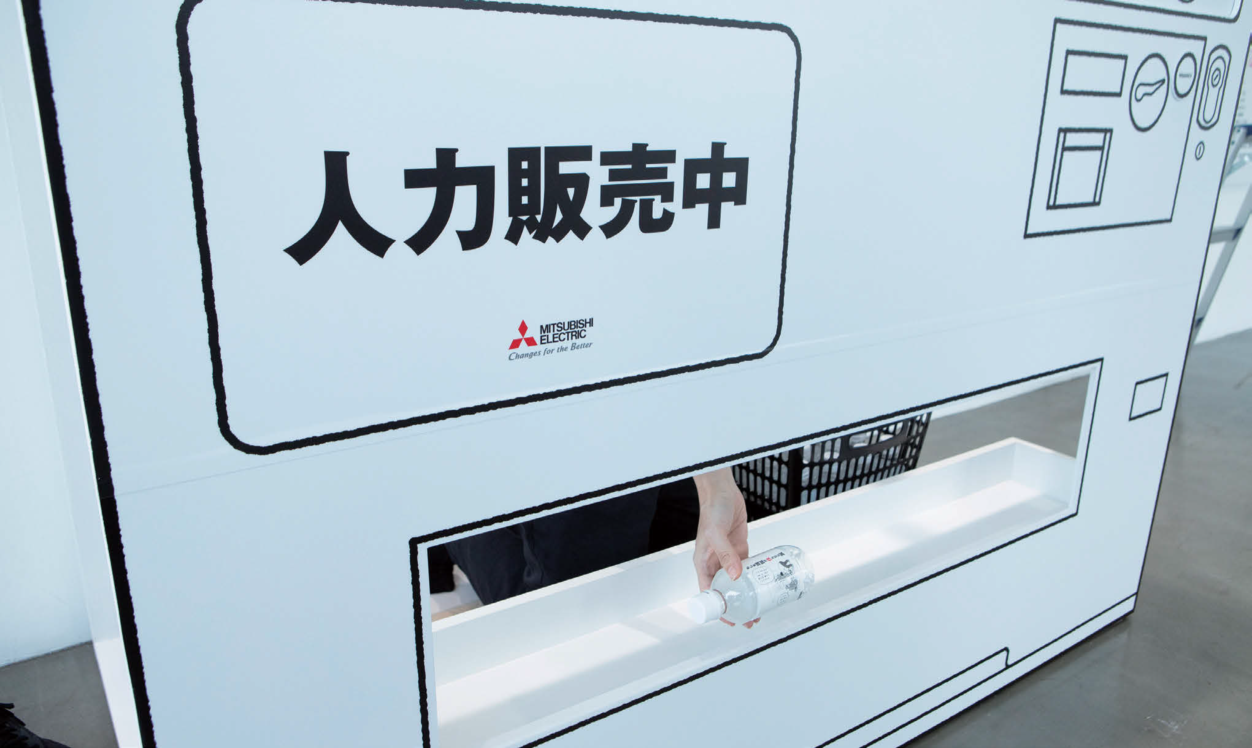 「もしも自動販売機が休んだら」という状況を体験してもらうために設置された「人力販売機」。