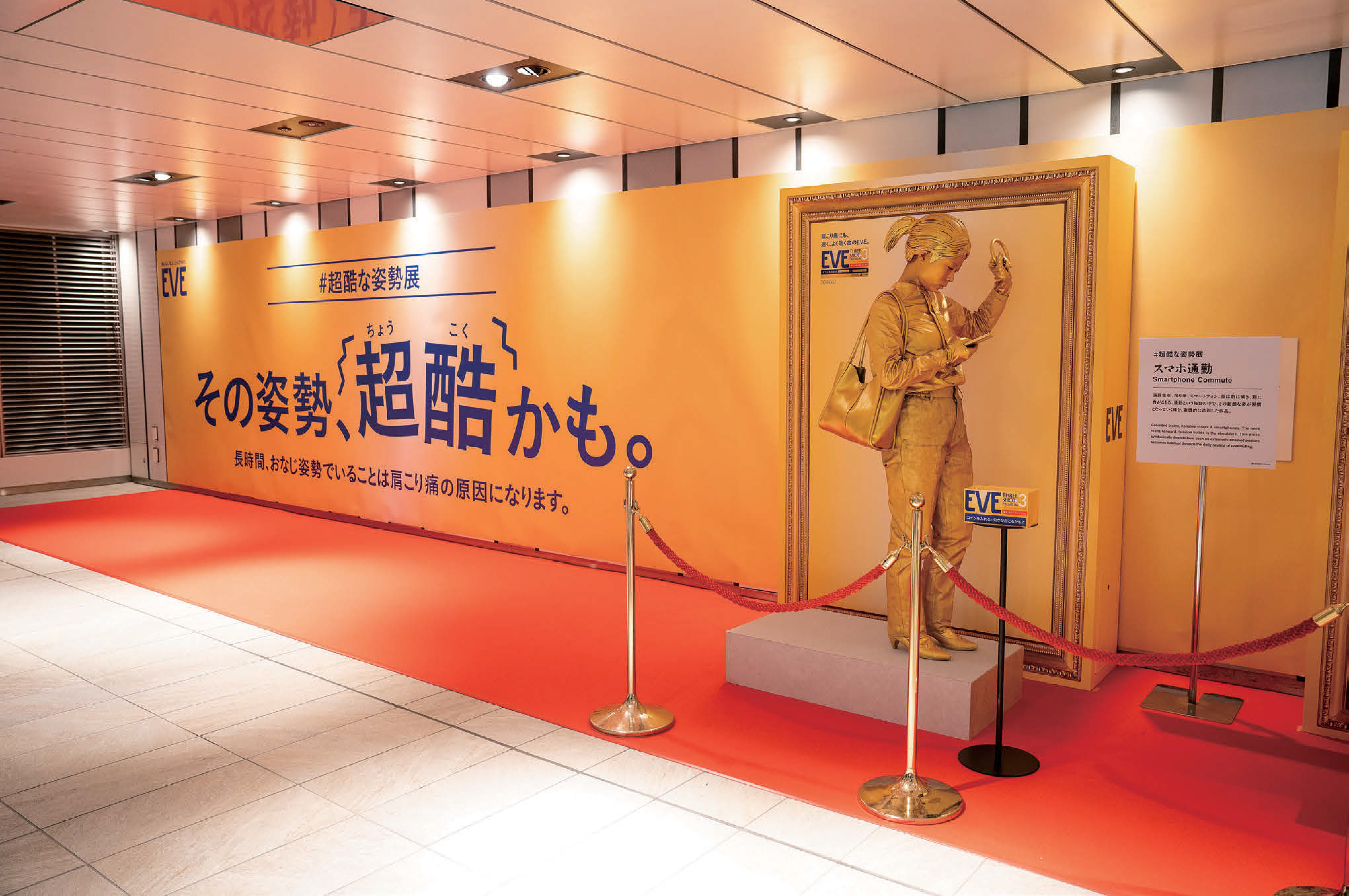 エスエス製薬は8月18日から、鎮痛薬「EVE(イブ)」シリーズの「イブスリーショットプレミアム」を訴求する啓発イベント「超酷な姿勢展」を大阪で開催した。2024年9月に発売された同商品が、頭痛や生理痛だけではなく肩こり痛にも効果を発揮することを広く知ってもらうことが狙いだ。