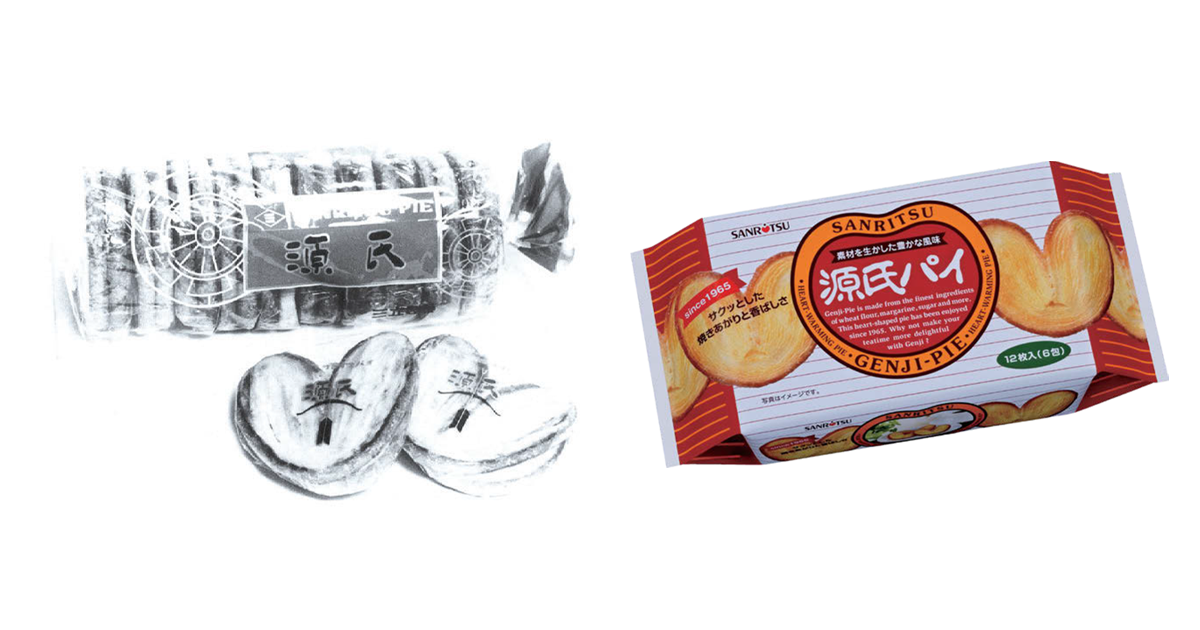 1965年に発売を開始した「源氏パイ」。その誕生のきっかけは、商品開発チームがヨーロッパ視察中に「パルミエ」と呼ばれるパイに出あったことだ。ハート型で見た目も可愛らしい手づくりのお菓子だった。