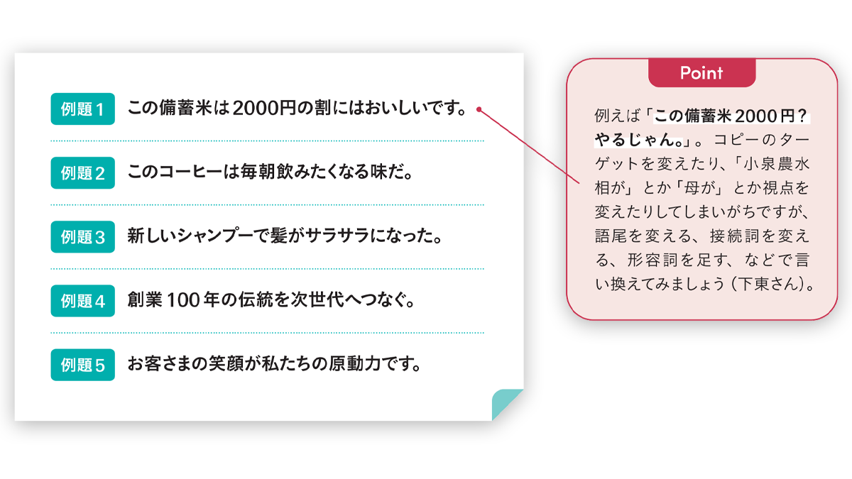 「 この備蓄米は2000円の割にはおいしいです。」これをどう言い換えますか?