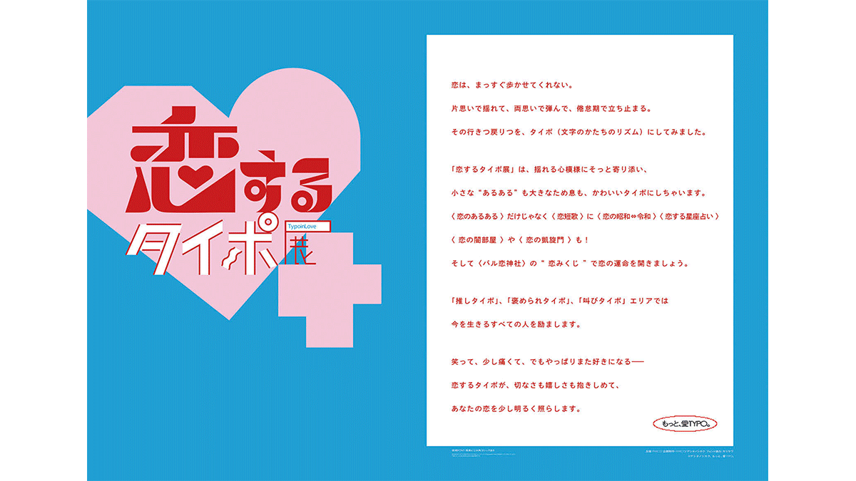 パルコは9月5日から10月13日まで、PARCO FACTORY(池袋PARCO本館7階)にて「恋するタイポ展」を開催。恋にまつわる共感性の高い言葉を、近年注目度も高いタイポグラフィの作品にして展示空間を創出した。